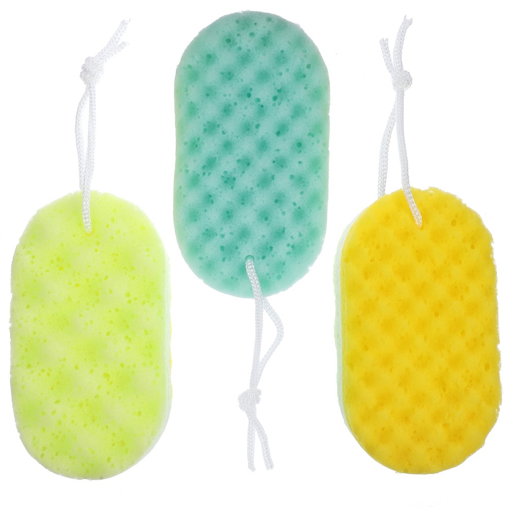 3 Pcs Bath Sponge Exfoliating Body Scrubber Dad Child Double Sided Shower